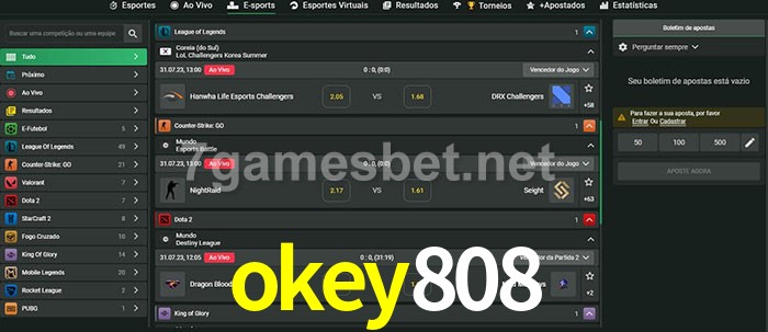 O okey808 oferece uma grande seleção de opções de apostas em e-sports com probabilidades competitivas